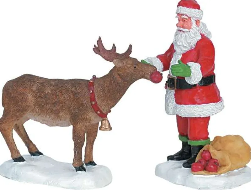 Santa is feeding the reindeer. She has to be in perfect shape to fly around the world during the Christmas Eve. This is the item #62226 by Lemax.