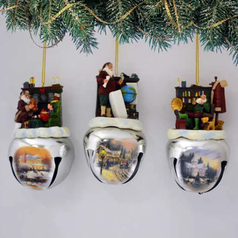 Thomas Kinkade’s two-dimensional Victorian manor artwork appears below in full colour on the shiny metallic bells, each luminously recalling home and family at holiday time. With a gentle shake, these working bell ornaments jingle a warmhearted welcome … the perfect finishing touch.