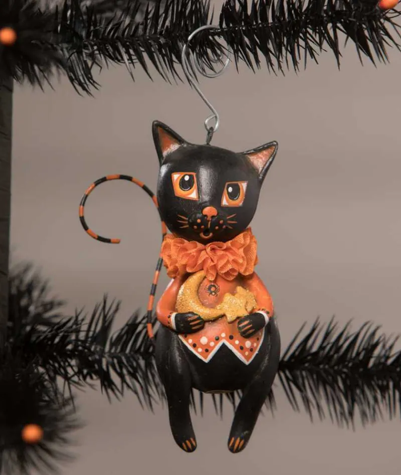This wonderful collectible is the item LA0392 – Moon & Stars Cat Ornament from Bethany Lowe Designs